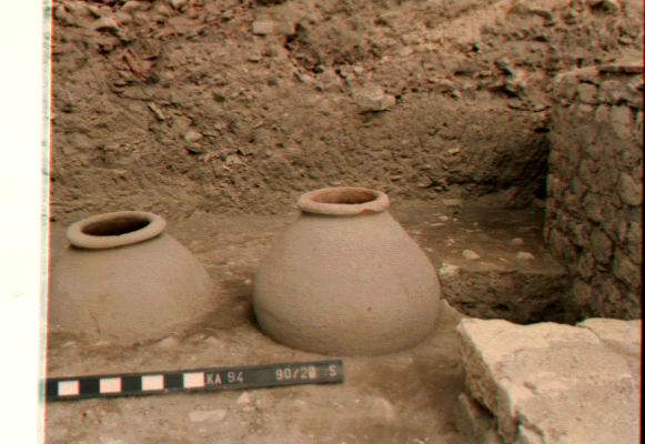 Zahlreiche Vorratsgefäße (pithoi) dienten wahrscheinlich zur Aufbewahrung von Lebensmitteln. Nägel zeugen